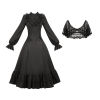 Really well put together dress -- it has the look of multiple layering pieces, but wears much more easily because it's all integrated. There are a lot of well made details, like the narrow ribbon trim on the bodice. Be aware that on one side the layers are fairly short, but a decorative crinoline takes care of that. The bodice is long enough for me (I'm 5'7 and sometimes dresses are too short in the bodice because they're designed for a shorter person!)