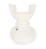 Really well put together dress -- it has the look of multiple layering pieces, but wears much more easily because it's all integrated. There are a lot of well made details, like the narrow ribbon trim on the bodice. Be aware that on one side the layers are fairly short, but a decorative crinoline takes care of that. The bodice is long enough for me (I'm 5'7 and sometimes dresses are too short in the bodice because they're designed for a shorter person!)