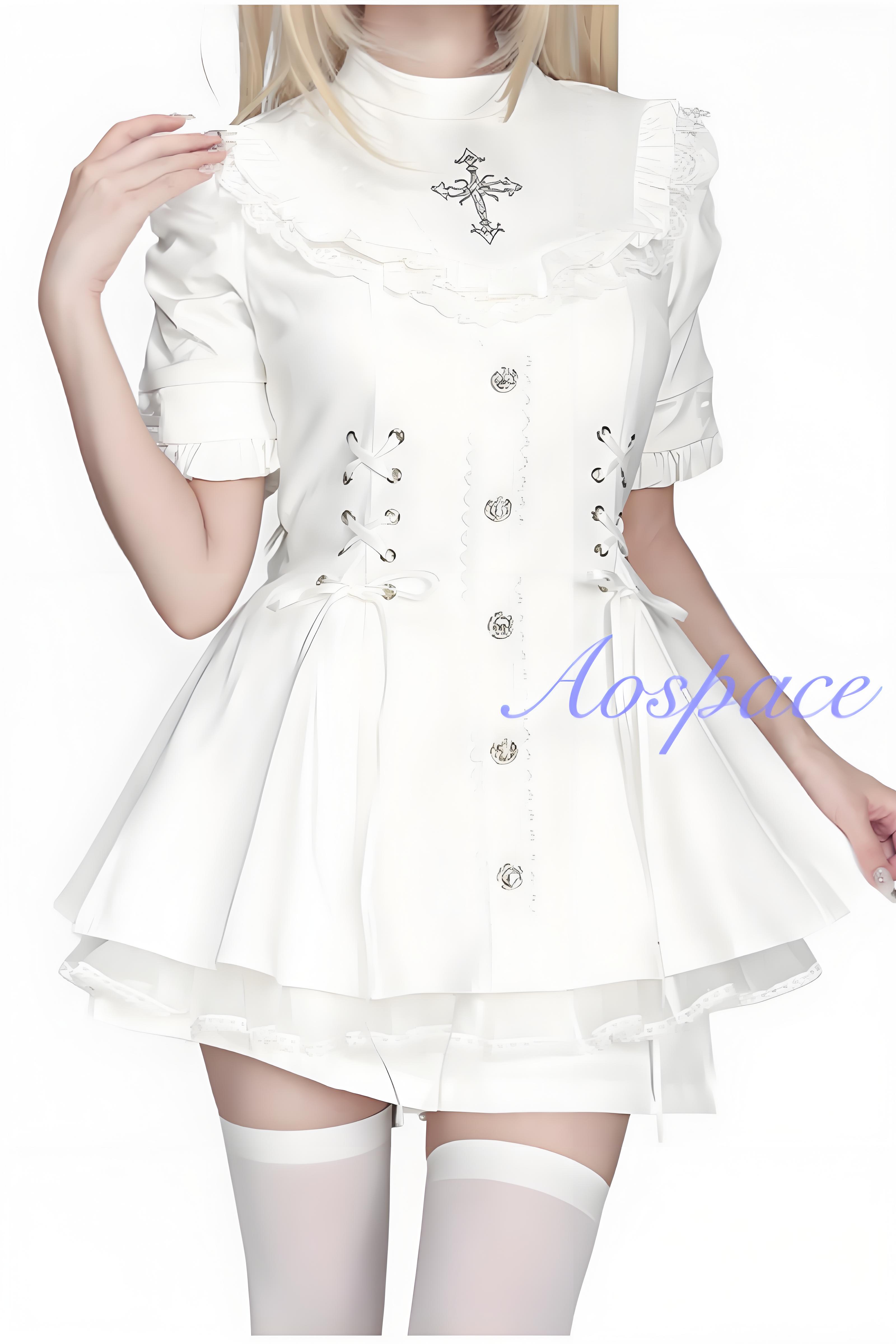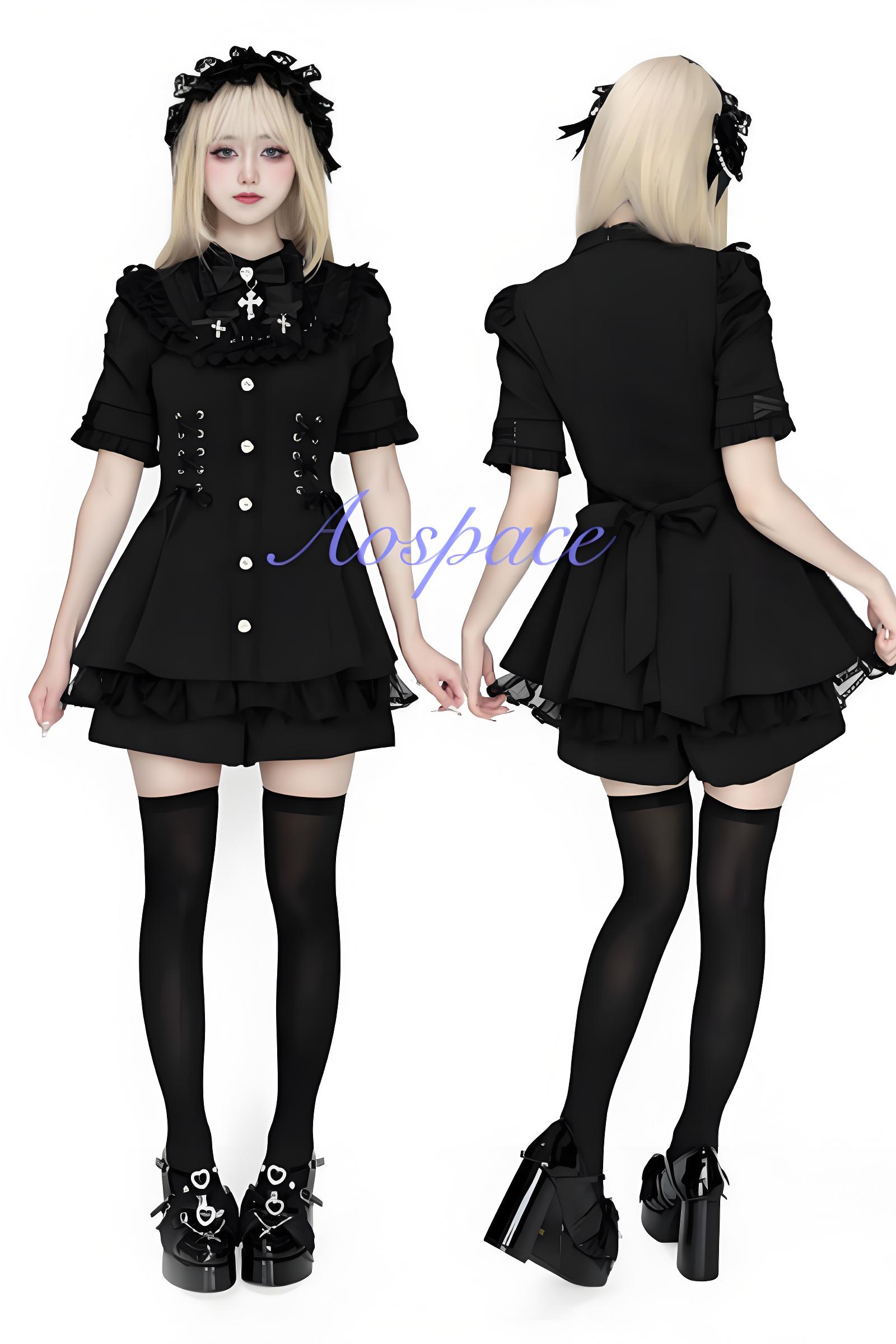 This series is designed with the drawstring waist design, cross elements, and delicate lacework and bows.