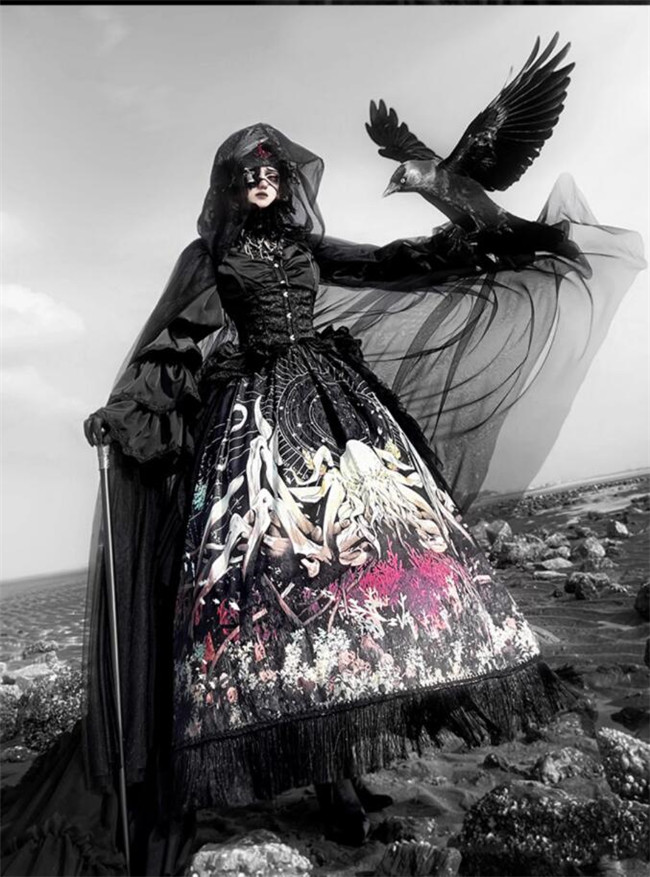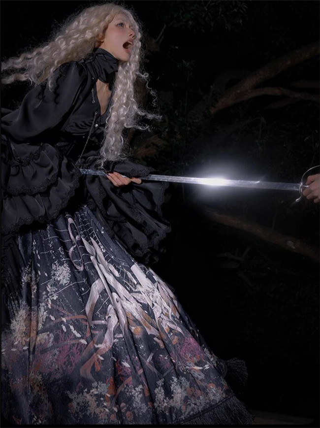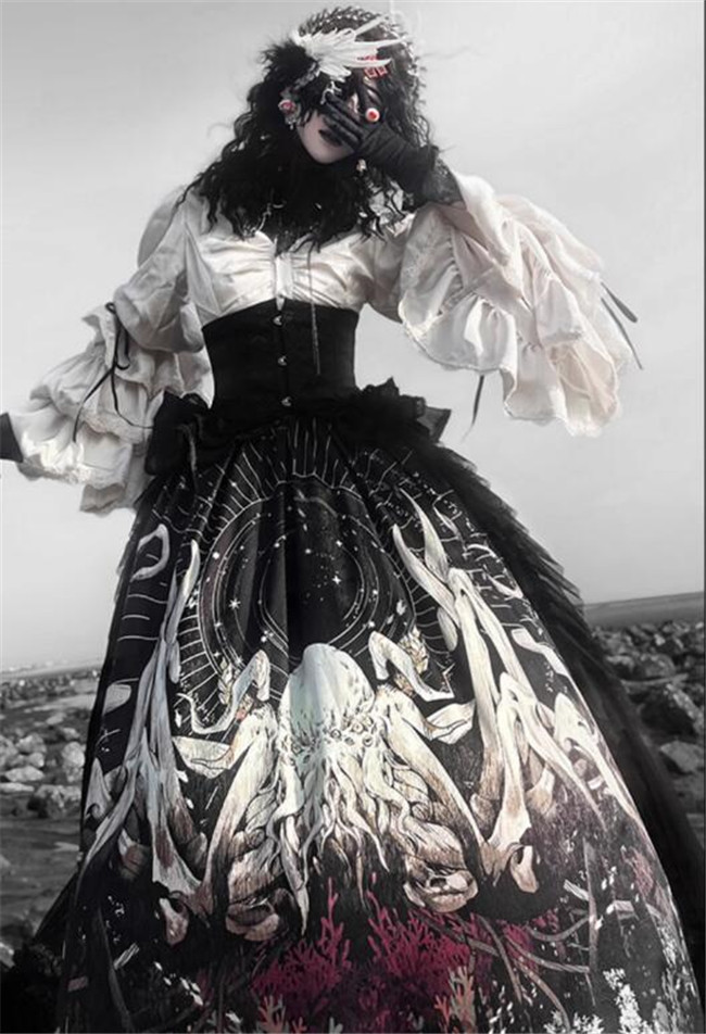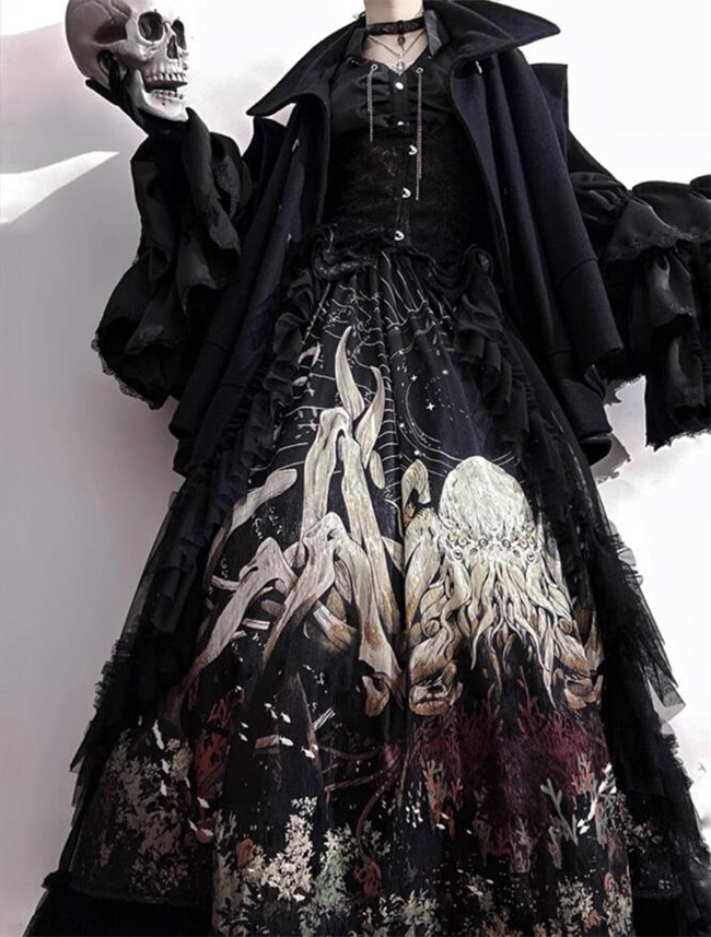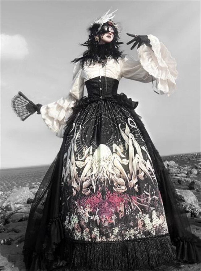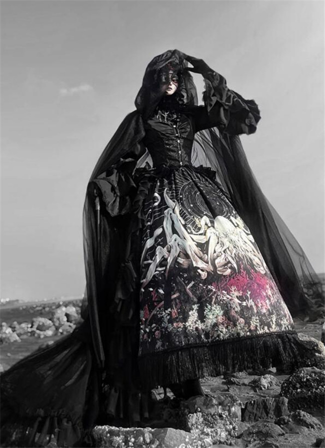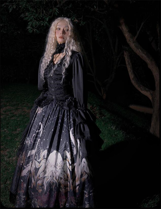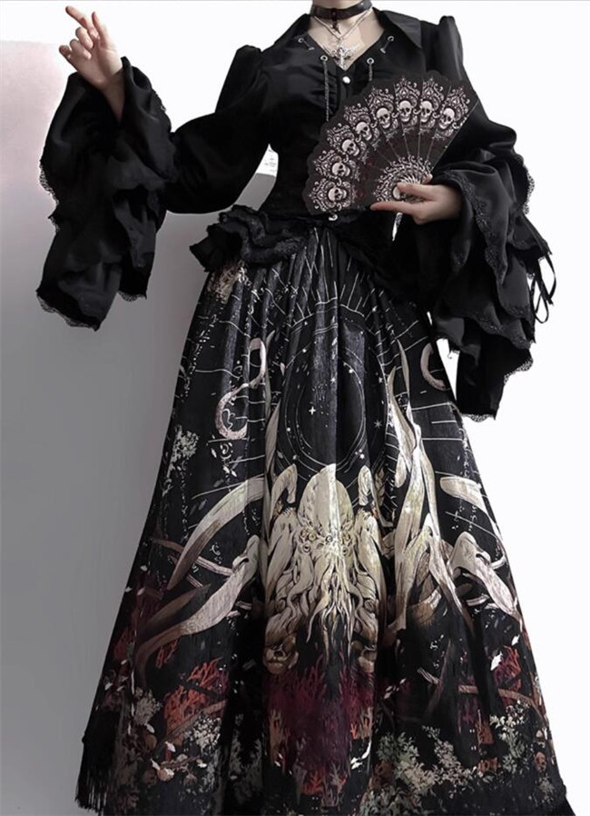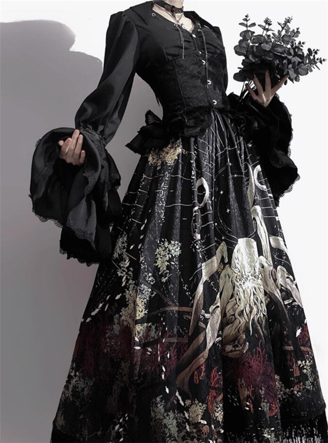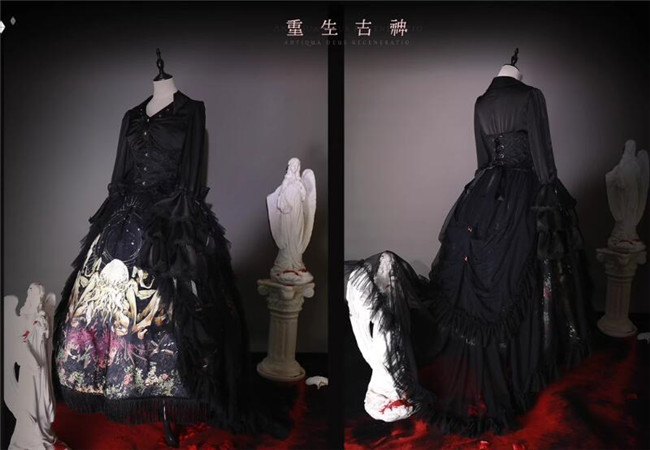 | Product Name | Antiqua Deus Regeneration Dark Black Gothic Lolita Skirt, Blouse, Corset and Train |