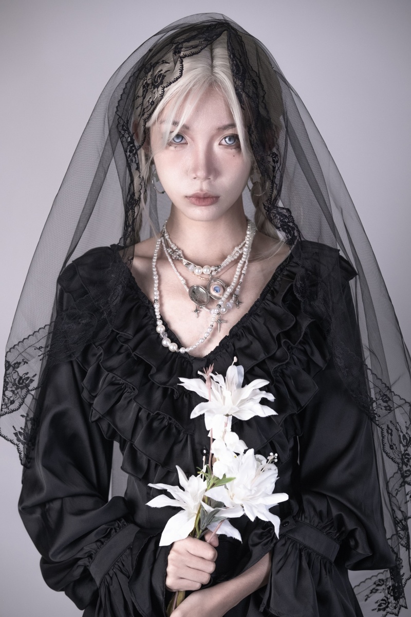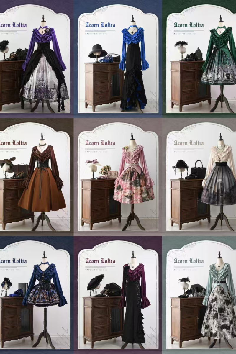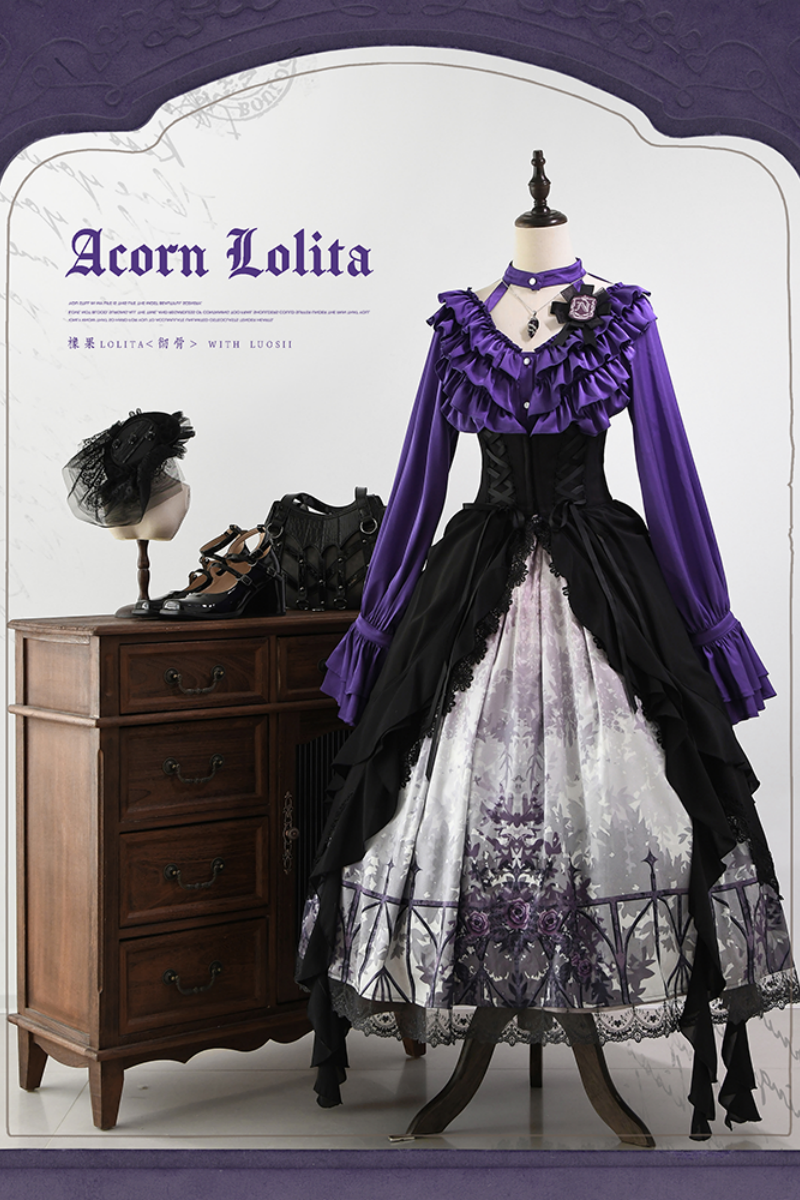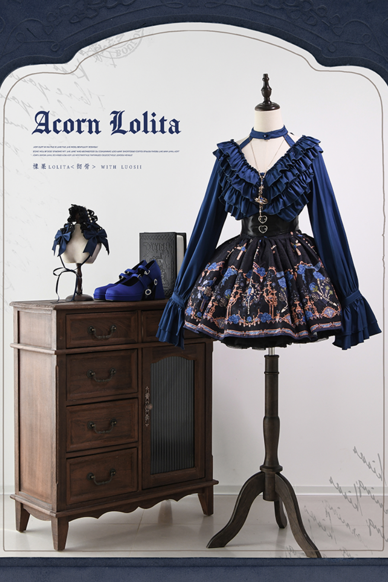 The chilling bone series is a gothic style blouse, including a simple style and a gorgeous style, and the features of the gorgeous style are a multiple-tiered neck and lace-up back, while the simple style features a hollowed out back. It is nice to wear or match with classic lolita dresses.