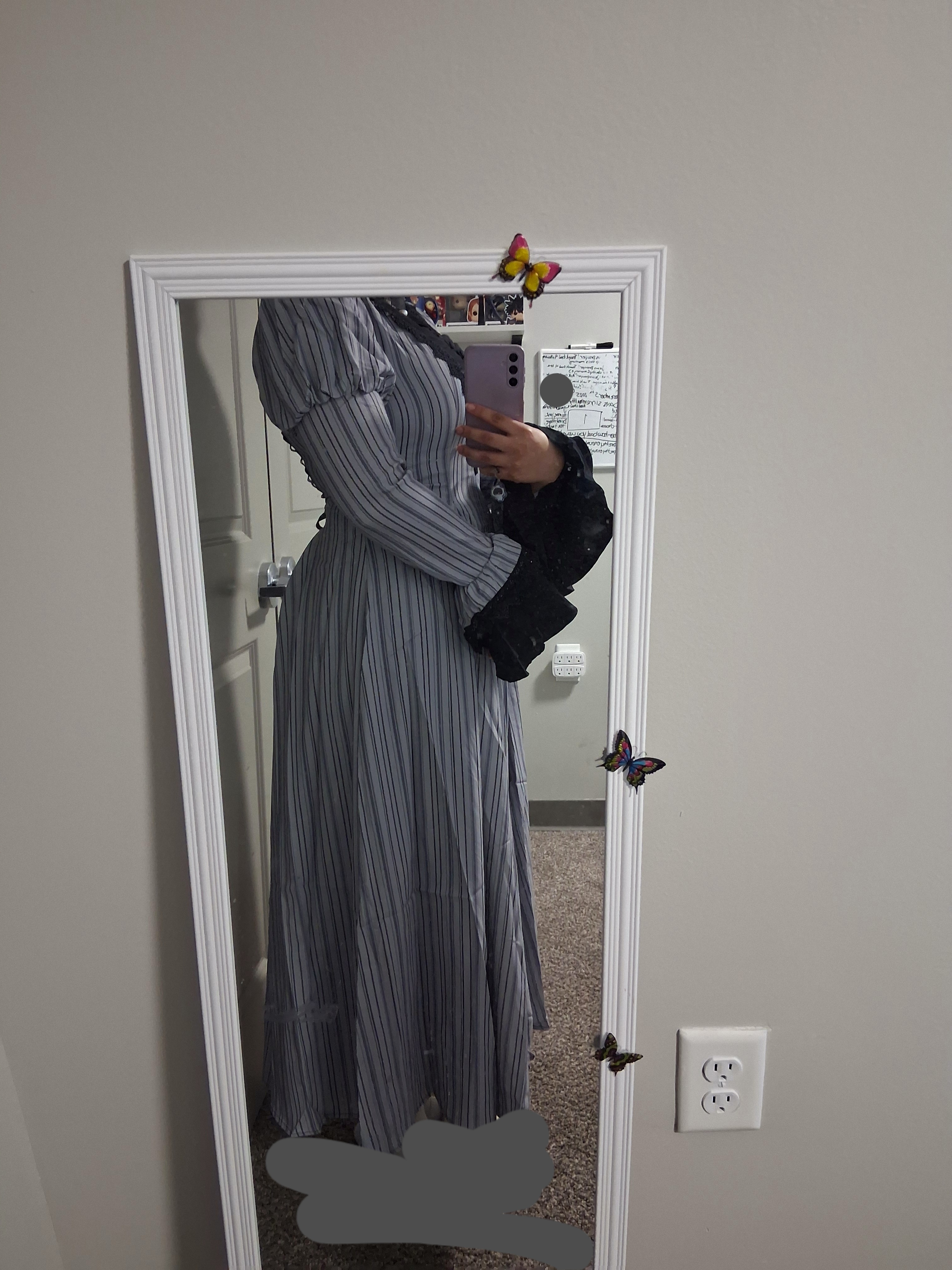 All the stitching is great and well secured. It’s a beautiful dress with great fitting on the bodice. There is room for the back to stretch but also ties to tighten. The actual skirt is nice as well with lots of details and 3d elements. Everything is secured well.