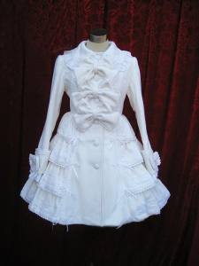 A-line style milky white sweet lolita coat, with long sleeves and ruffled collars. This winter jacket has been decorated by bold bows at front, at the handcuffs, and a bold bow at center of the back as well. White lace has added in another kind of cuteness. Besides the three bold bows at front, there are round bold buttons. Four layers of lace at the pluffy area of the coat. The jacket now is available at special sale price, as low as 79.99USD only, and custom tailor available.