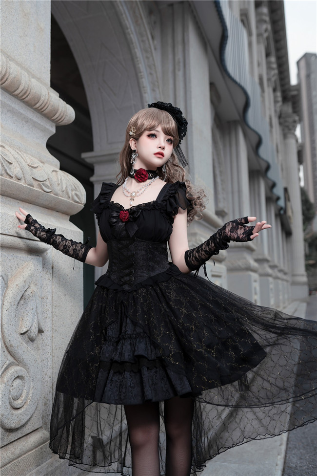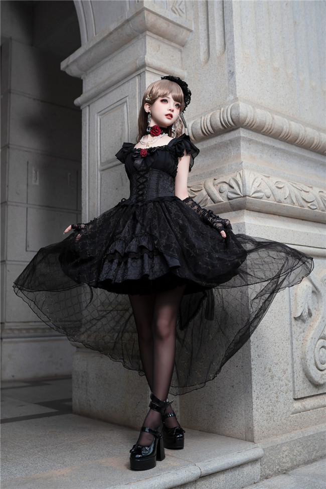 | Product Name | Dark Rose Fishbone Waist Gothic Lolita Dress |