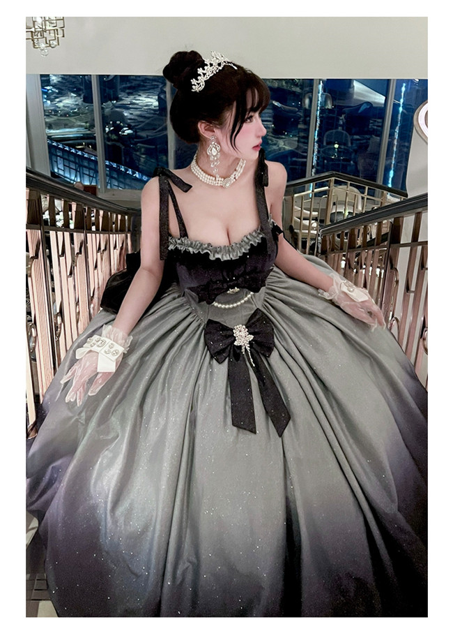 ***Composed of: a jumper dress + detachable waist bow + detachable chest bow only, the back bow tailing, necklace and other accessories are NOT included.