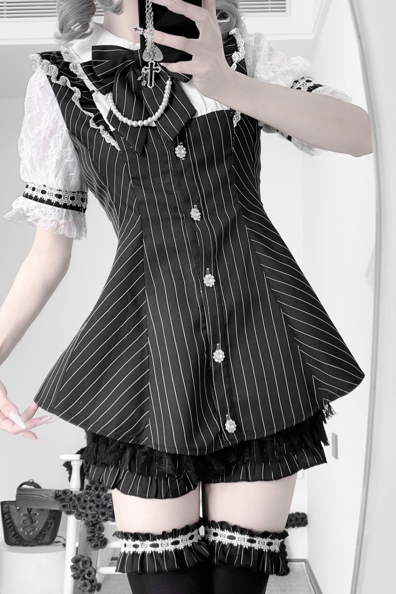 | Product Name | Bug Starting Dream Ode Stripe Black Set Jirai Kei Outfits |