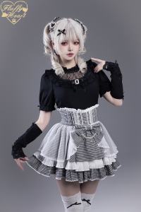 The Jirai Kei Style skirt features a layered tulle design with delicate lace trim, a detachable pearl chain, and a large bow detail.