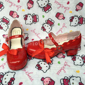 • Product Name: Girl's Sweet Glossy Red Lolita Heels Shoes