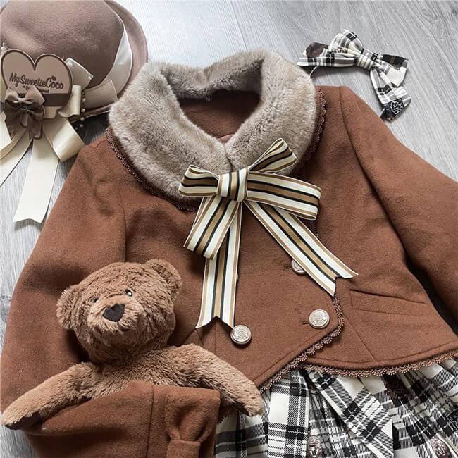 ***Composed of: The price is for the coat + Detachable fur collar + 2 bow brooches, the other accessories are NOT included.