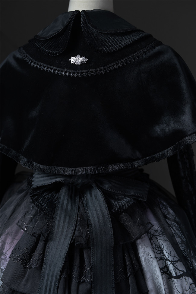 ***Composed of: an short sleeves op dress + detachable set-in sleeves + detachable velvet cape + neckbow.