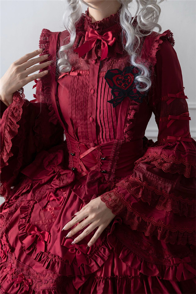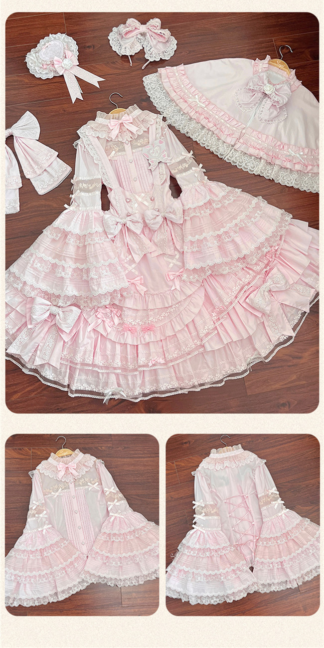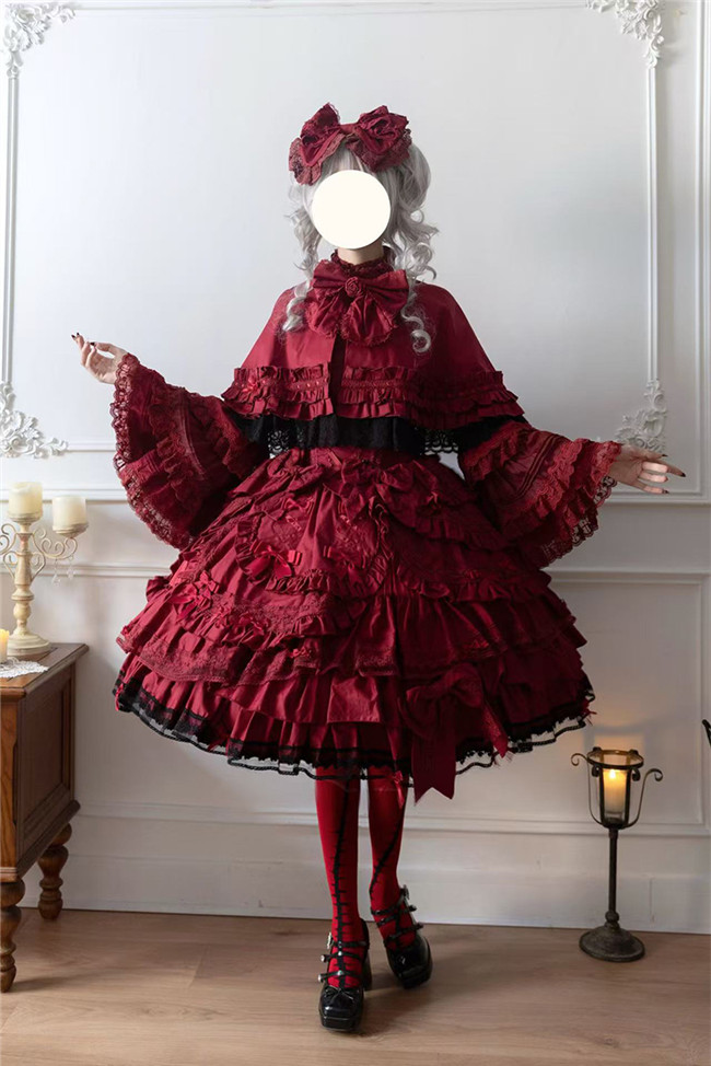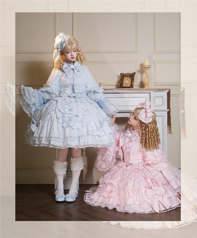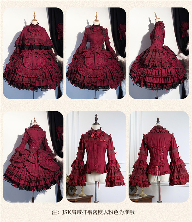 ***Fullset: Jumper dress + blouse + cape + heart shaped hat + headbow + embroidery badge as gift.