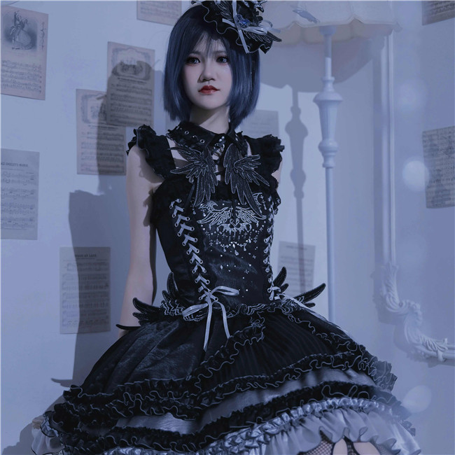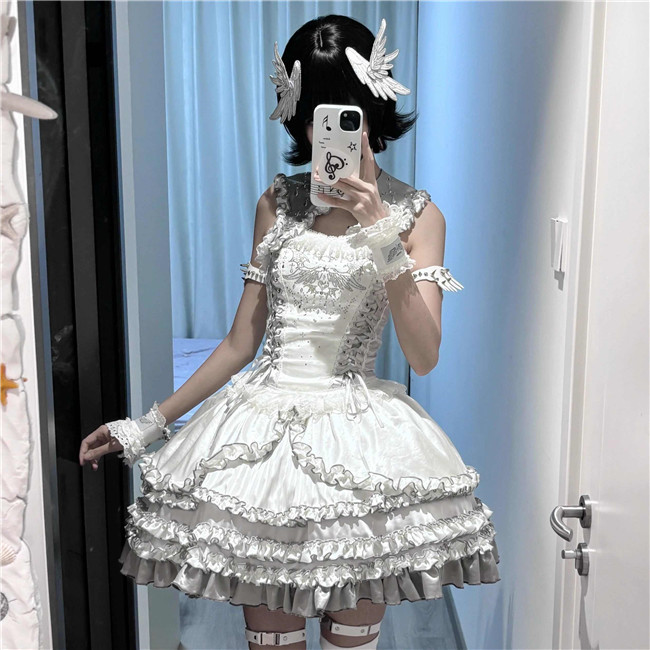 | Product Name | Metallic Angel Silver and Black Skirt and Top Lolita Accessories |