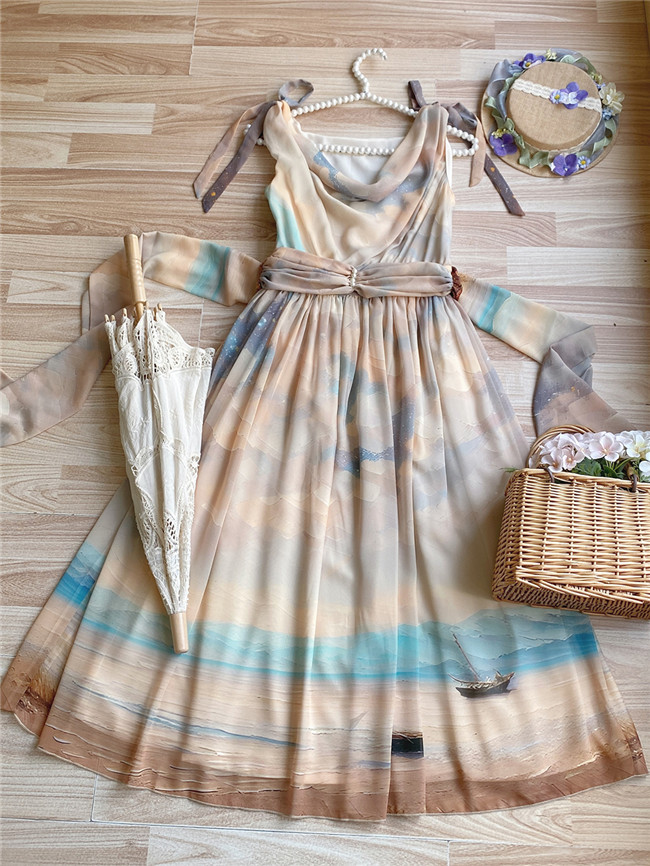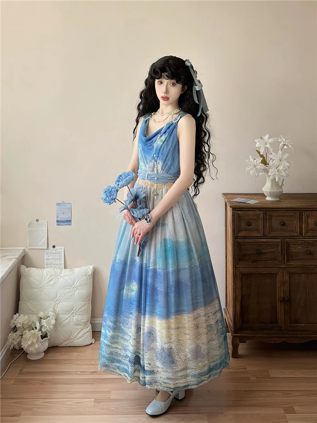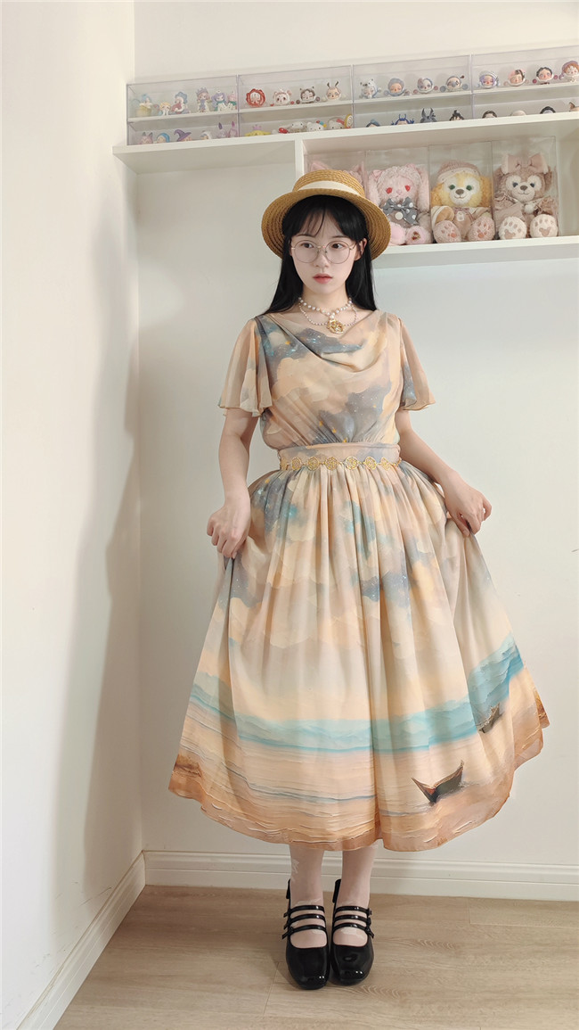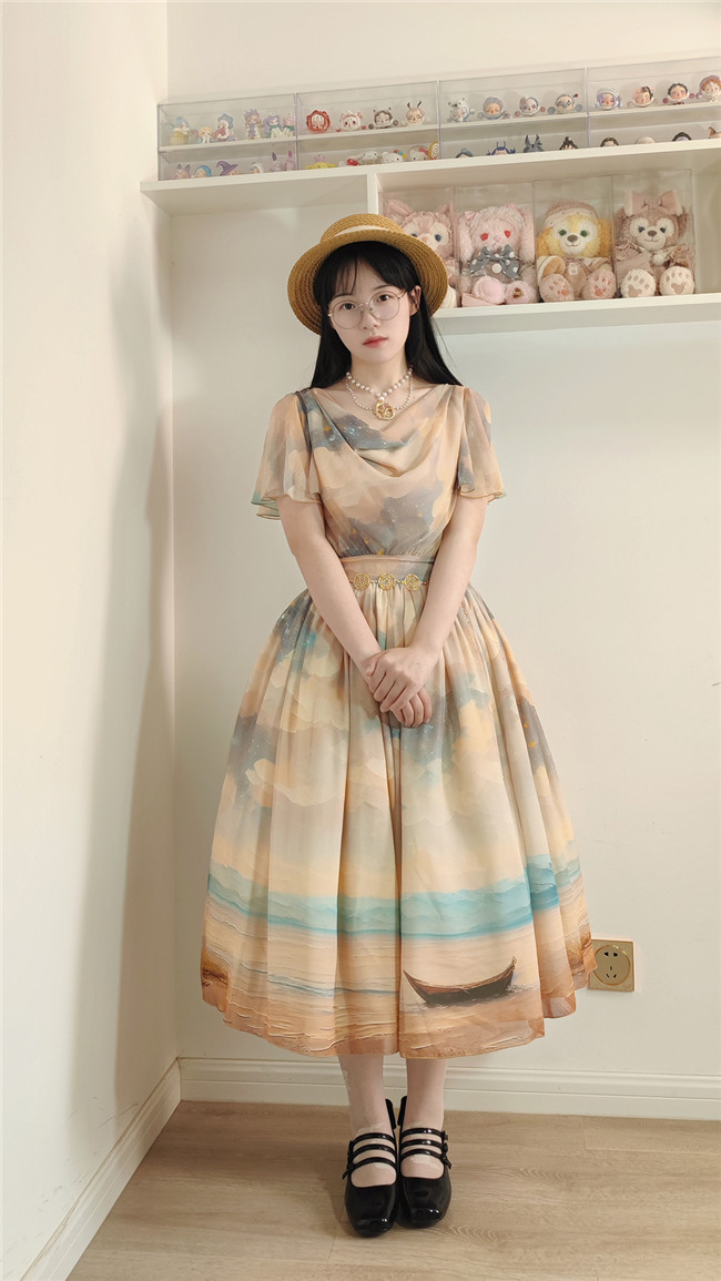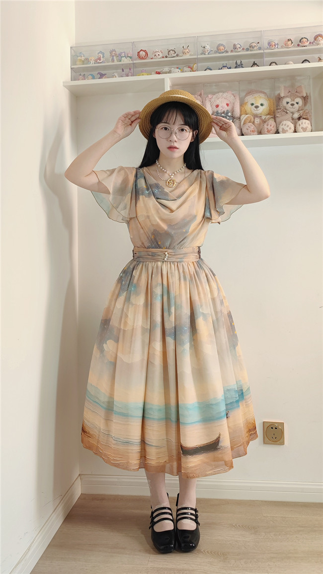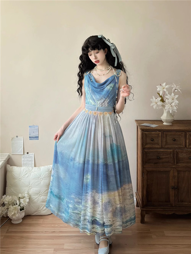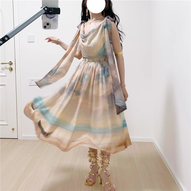 | Product Name | Miss Point Greek Inspired Heap Collar Print Dress |
