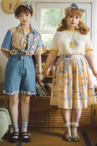 ***Materials: Blouse: Imitation Cotton Fabric; T-shirt: Pure Cotton.