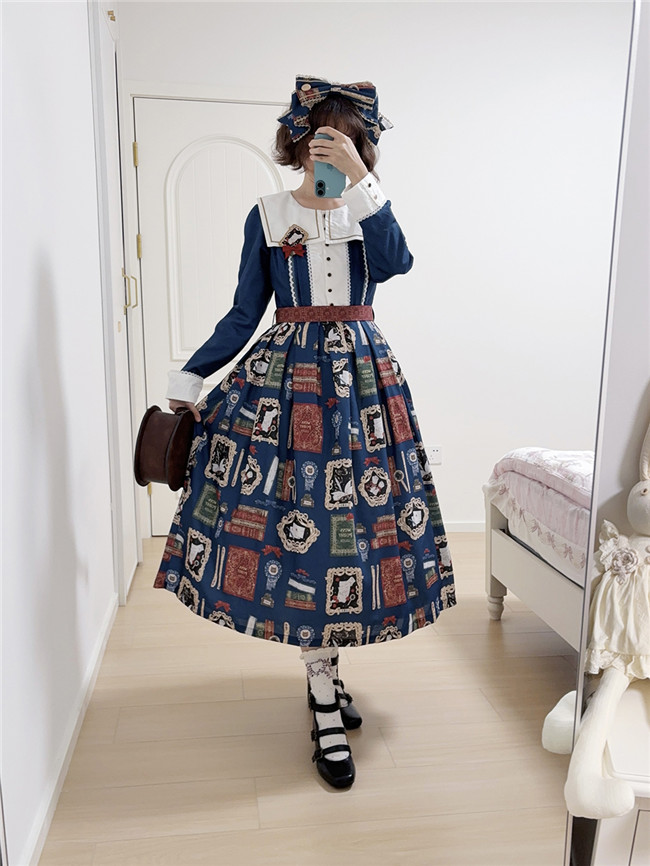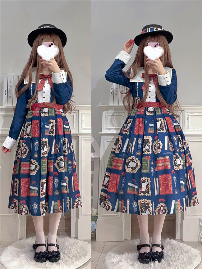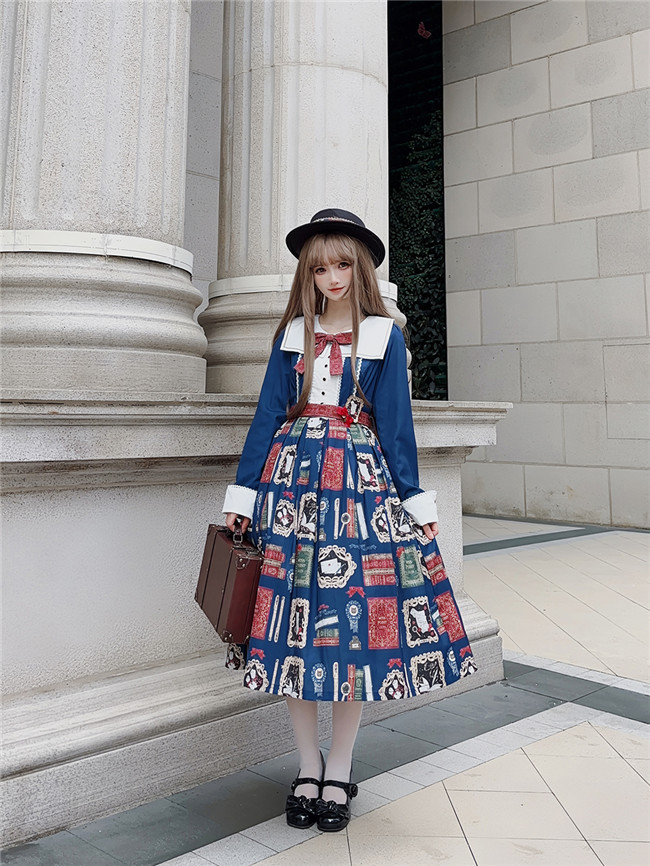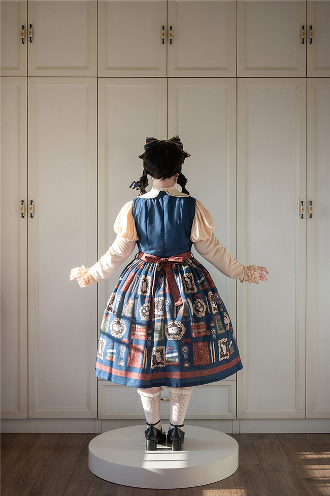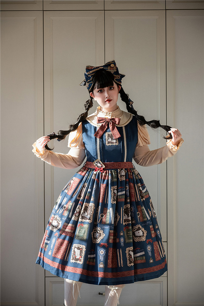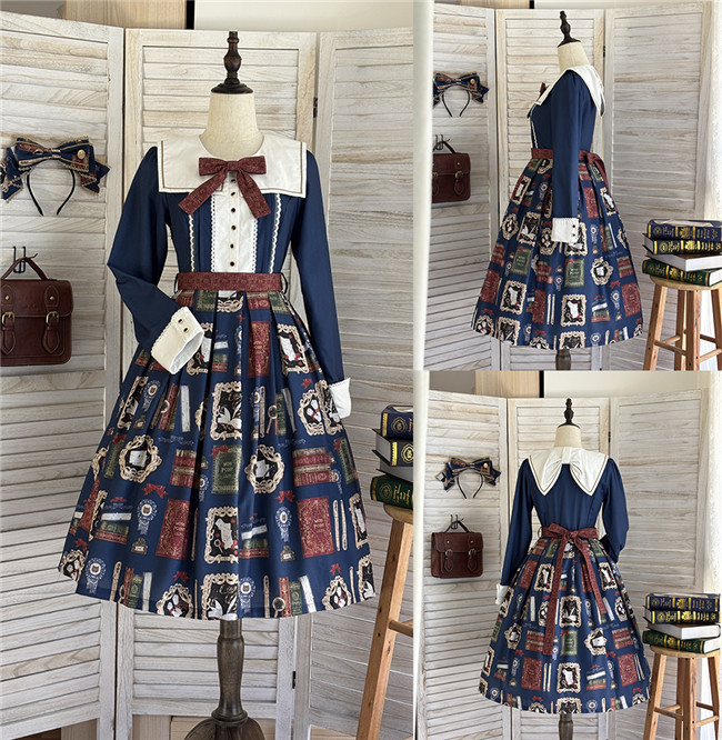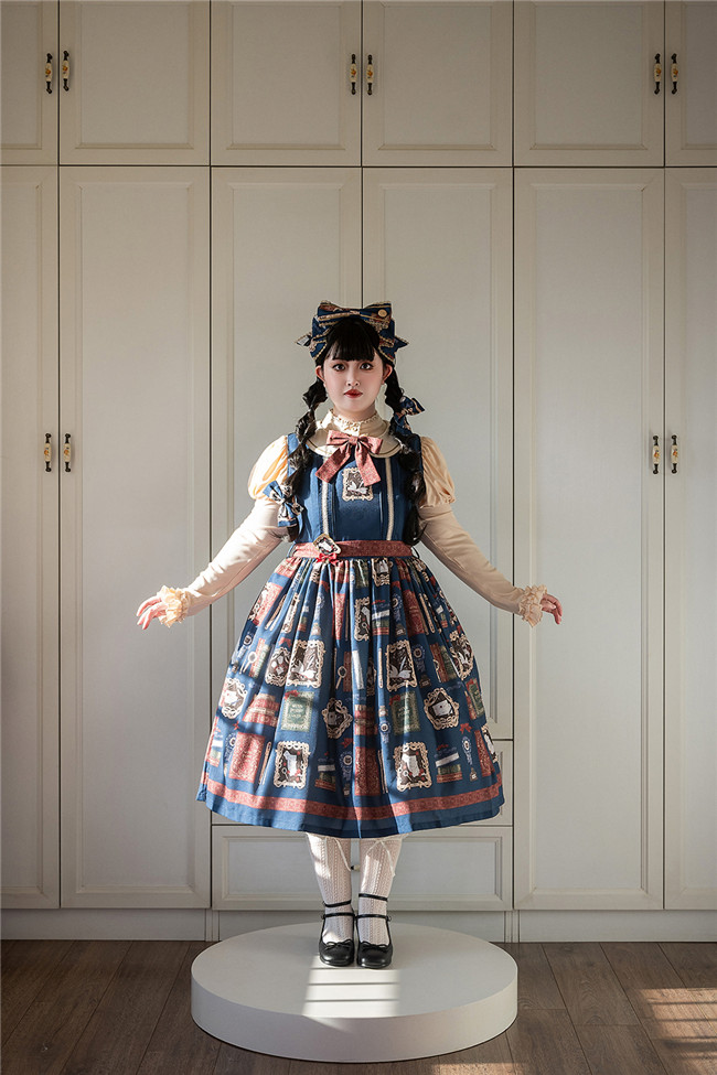 This is retro printed series which includes one piece, jumper dress and salopette 3 models in dark blue, light blue and beige. All have large side pockets, which are very convenient.