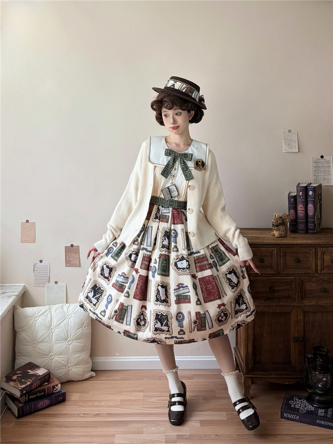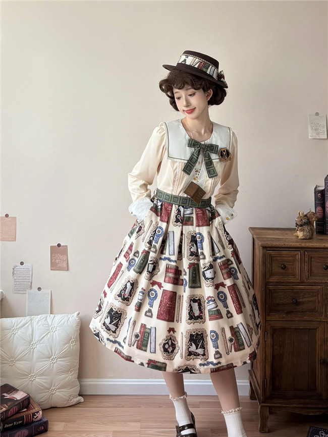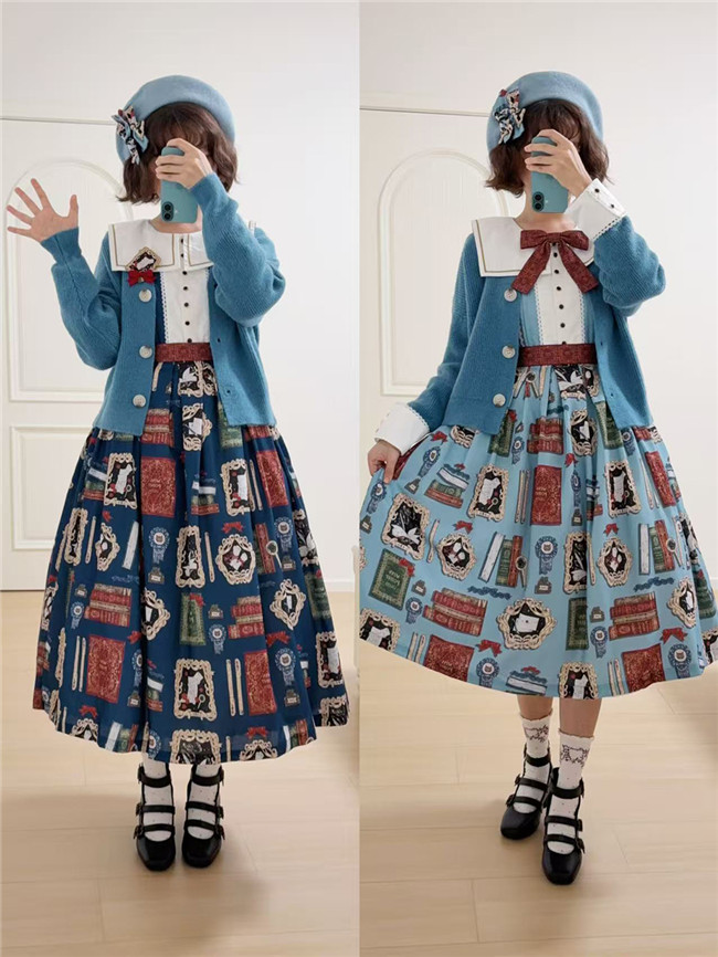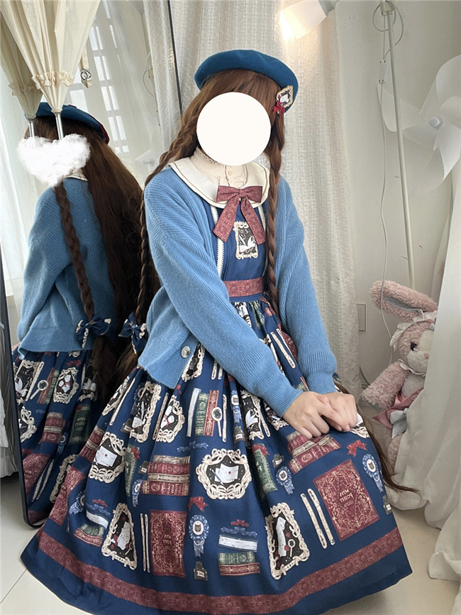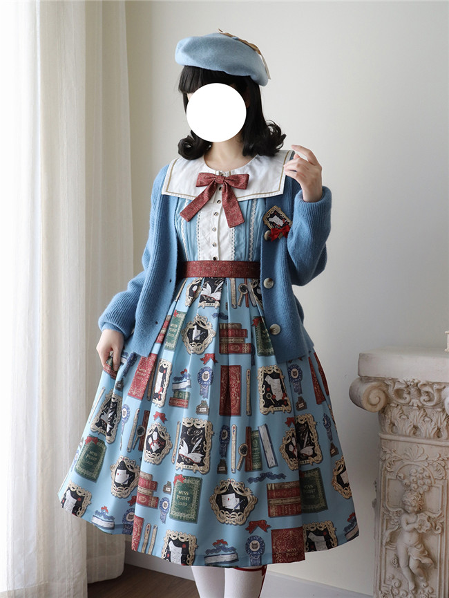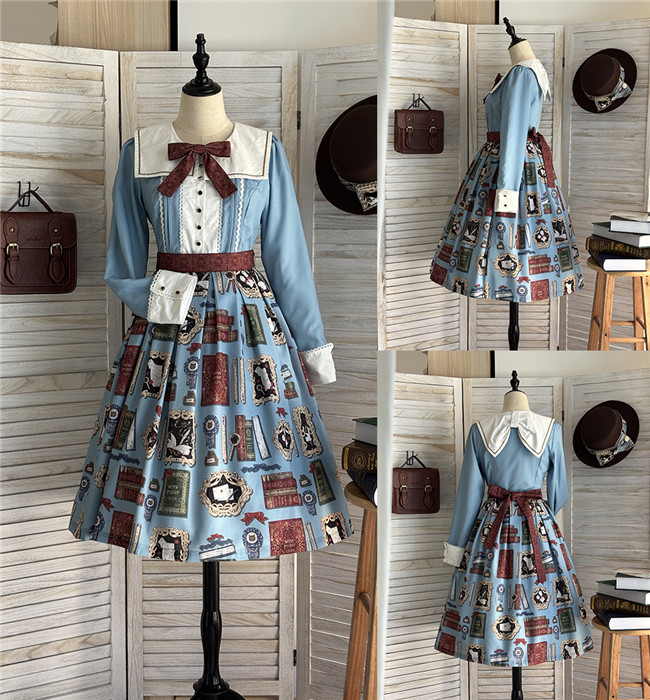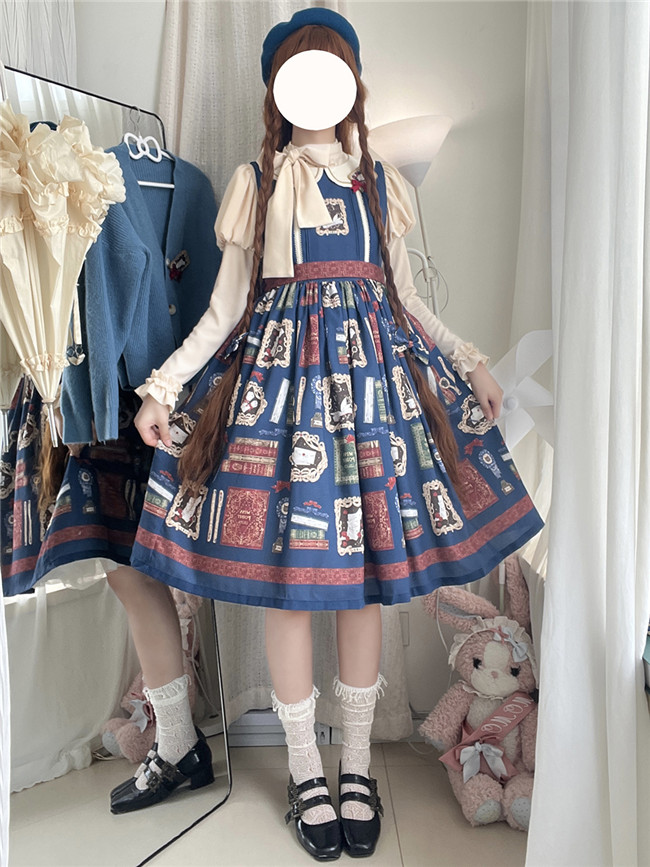 This is retro printed series which includes one piece, jumper dress and salopette 3 models in dark blue, light blue and beige. All have large side pockets, which are very convenient.