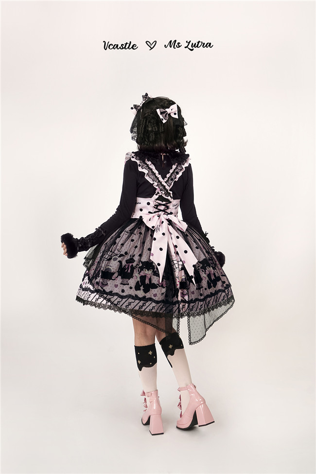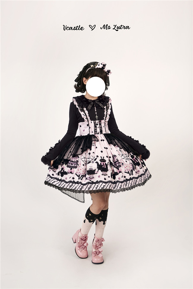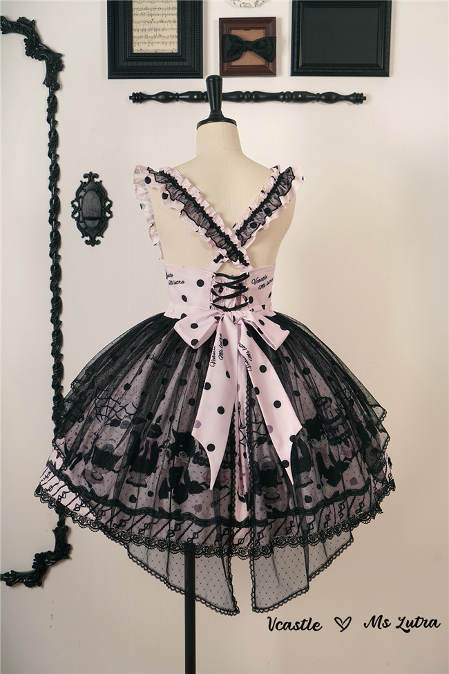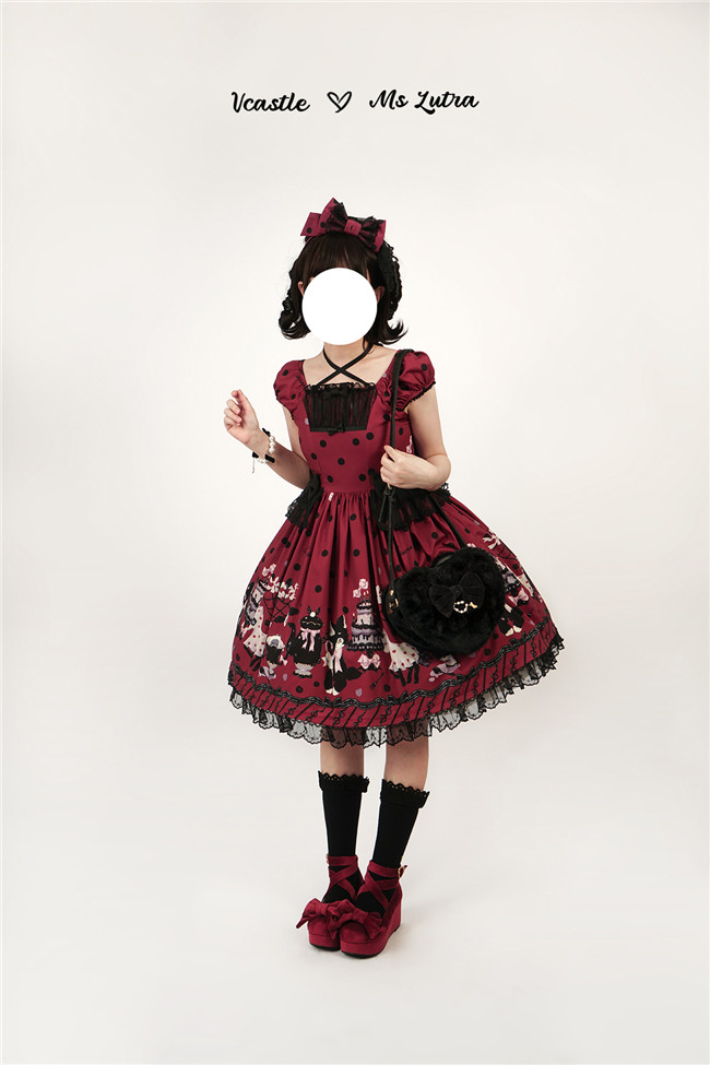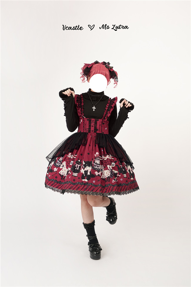 This series comes in red, purple and pink 3 colors and one piece and salopette 2 models, with shirring and corset lacing at back for adjustment. The bows and mesh for op are not detachable, and the overlay on the skirt is also not detachable.