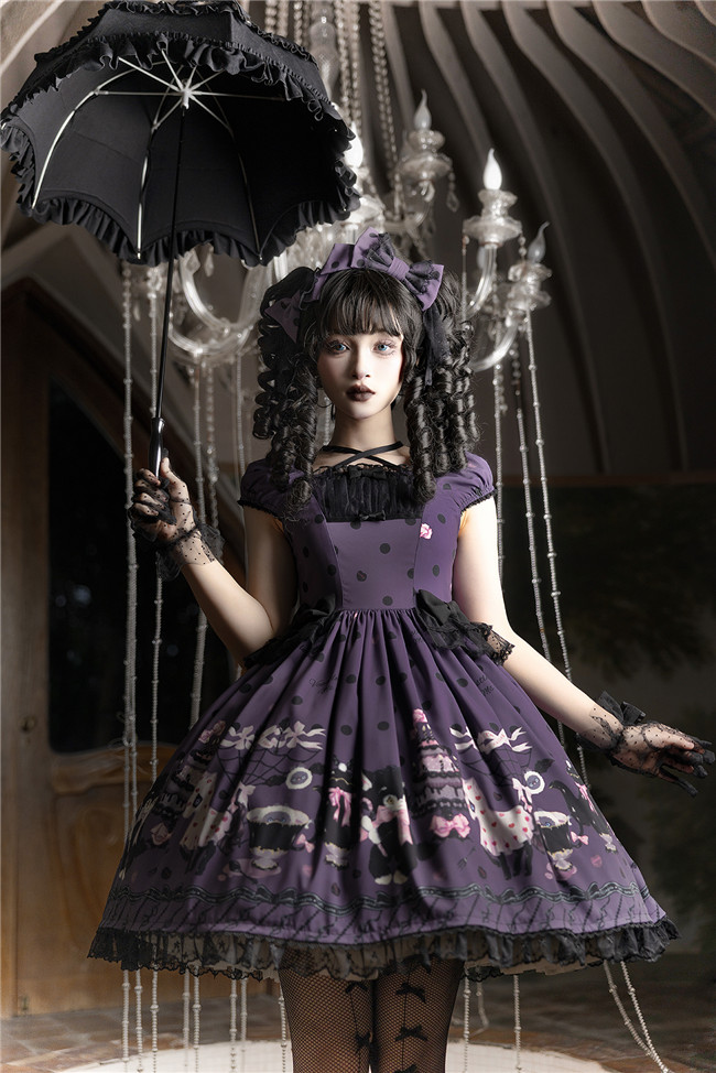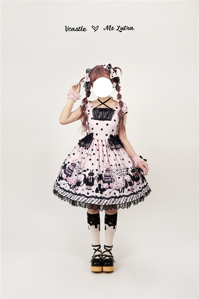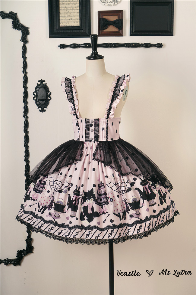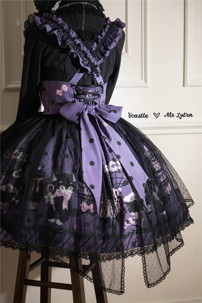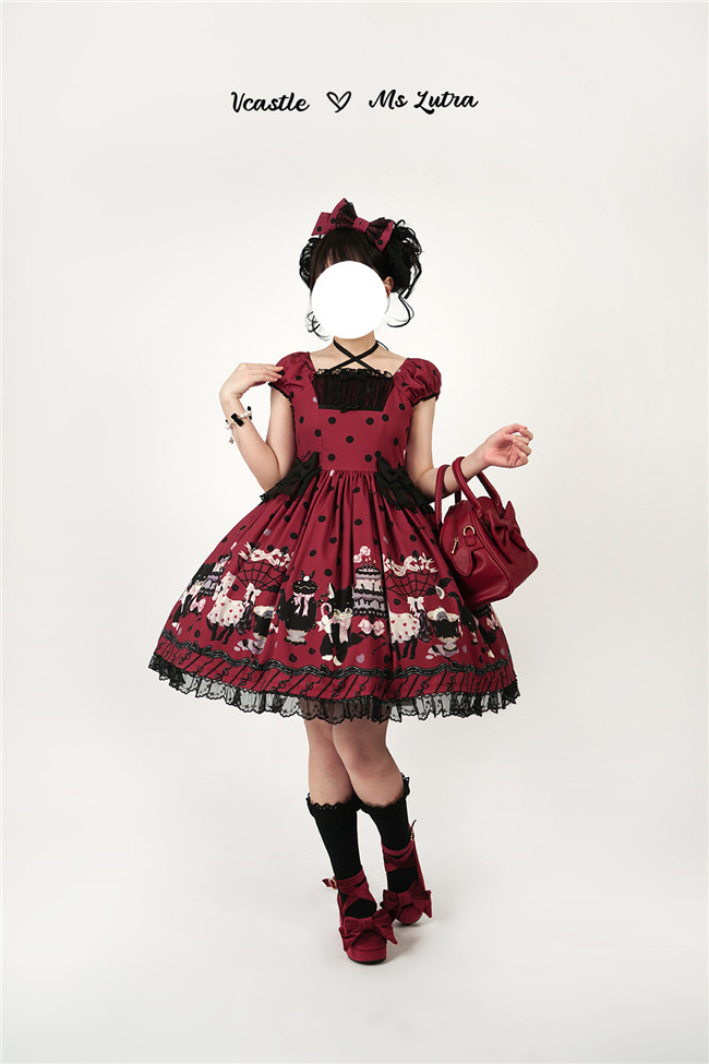 This series comes in red, purple and pink 3 colors and one piece and salopette 2 models, with shirring and corset lacing at back for adjustment. The bows and mesh for op are not detachable, and the overlay on the skirt is also not detachable.
