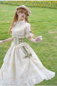 ***Item Name: Withpuji To Austin Empire Waist Print Dress and Corset