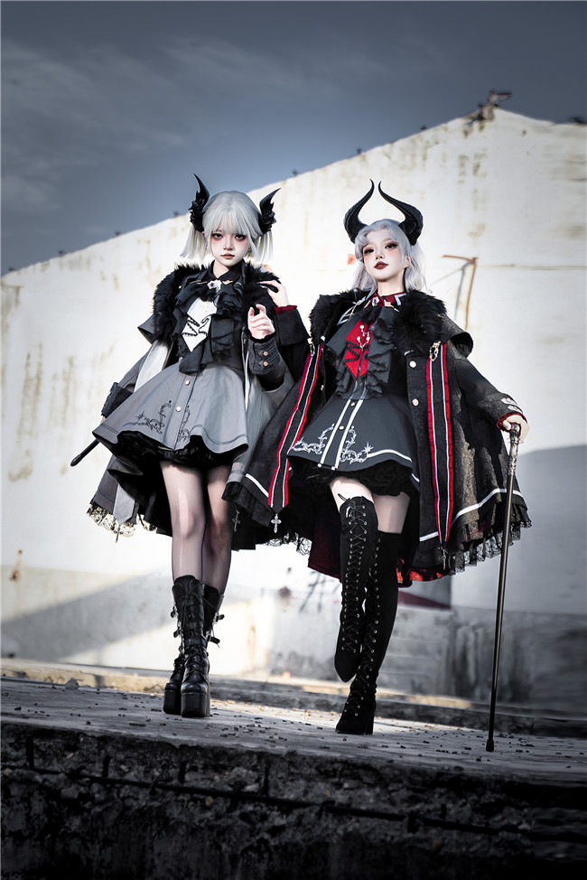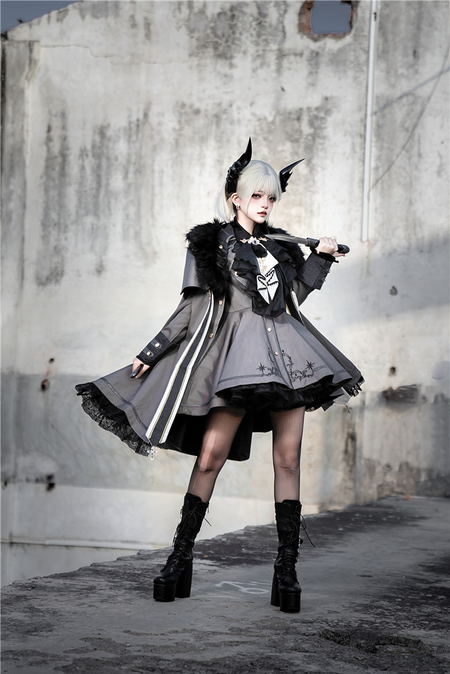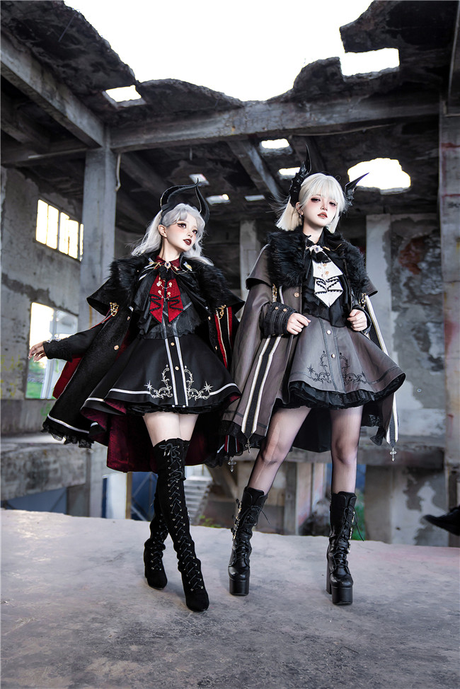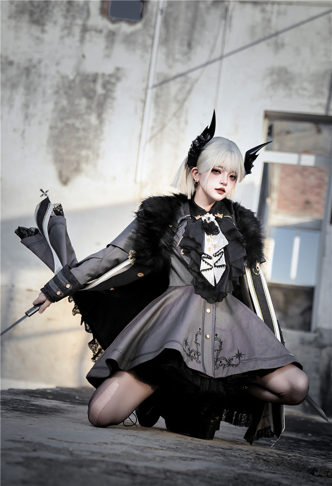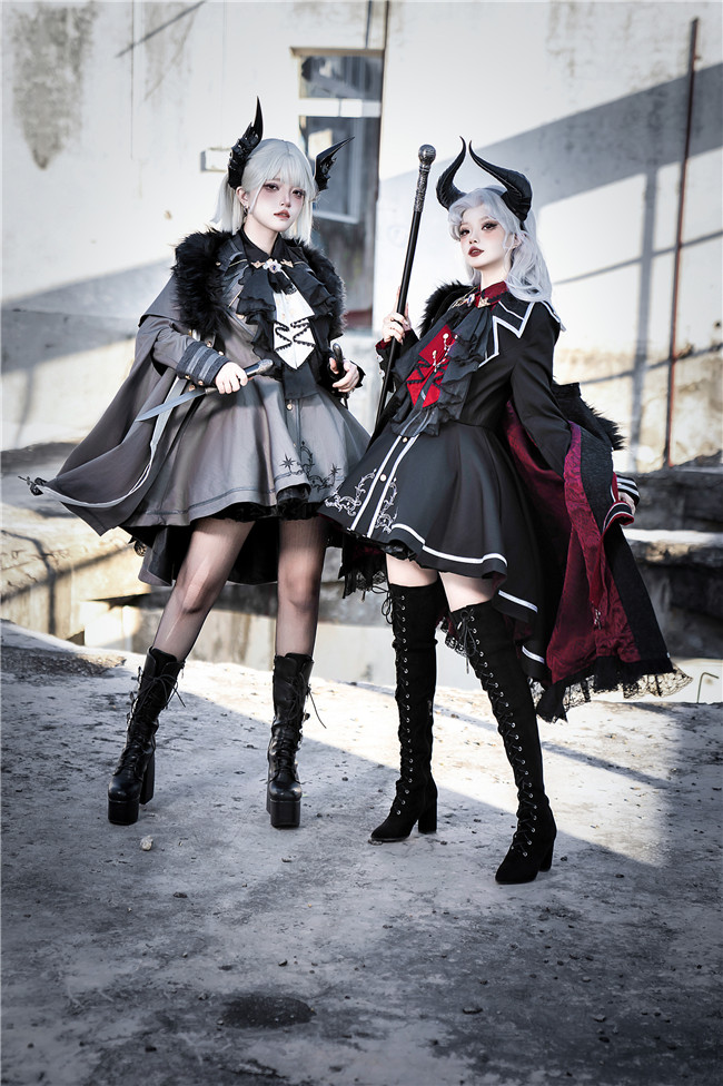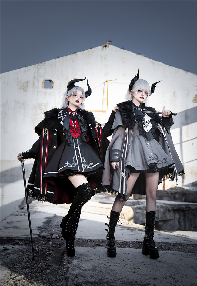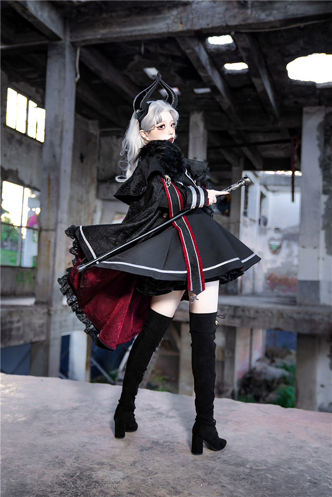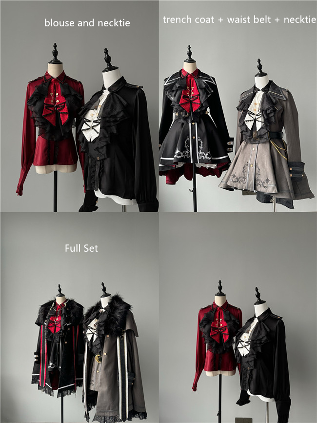 ***Full Set includes blouse + necktie + trench coat + long cape with fur collar + related accessories on it + waist belt + (a pleated short skirt or a pair of suit pants as gift)